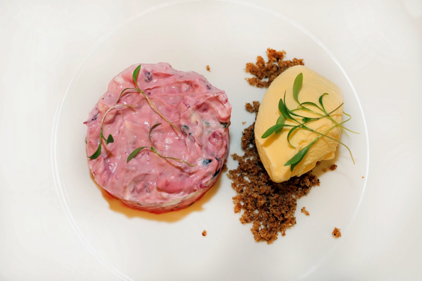Frutos vermelhos com mascarpone e poejos e bola