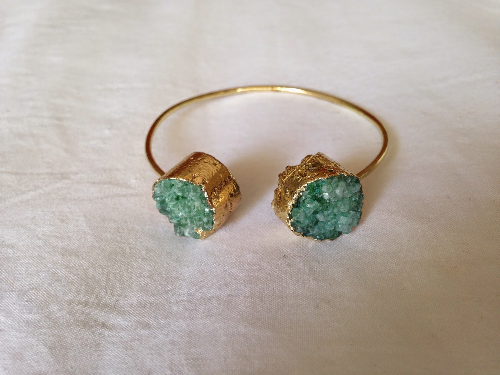 | Druzy verdes. Existem em branco e em rosa, mas as verdes são as minhas favoritas. Uso todos os dias com mais pulseiras, |