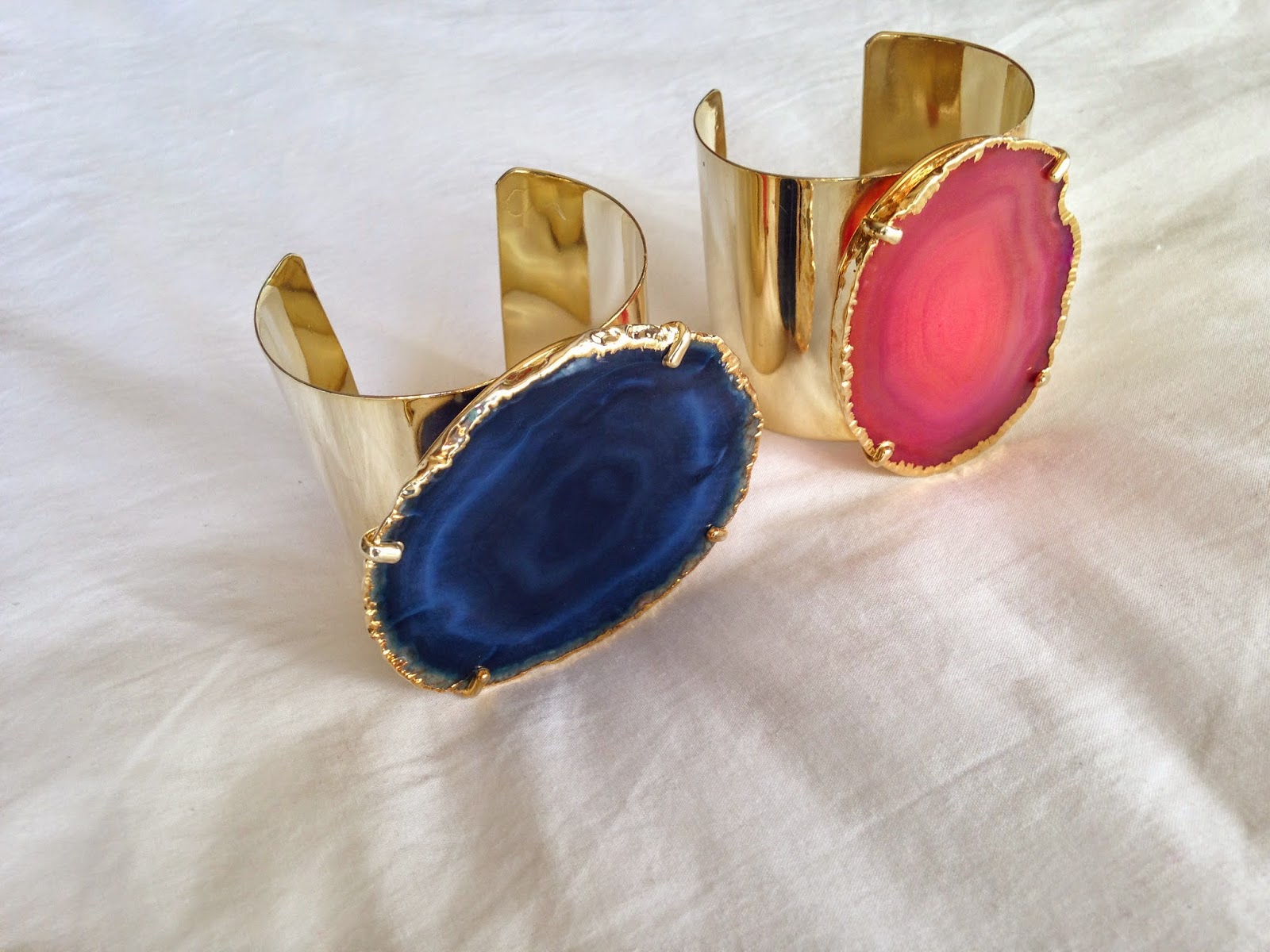 | Cuffs de Agates Fizeram estreia no Amazing Bazaar e foram um mega sucesso. Cuffs com pedras de agate rosa ou azuis, fazem um look completo e cheio de coolnees. Adoro a minha em rosa!! |
