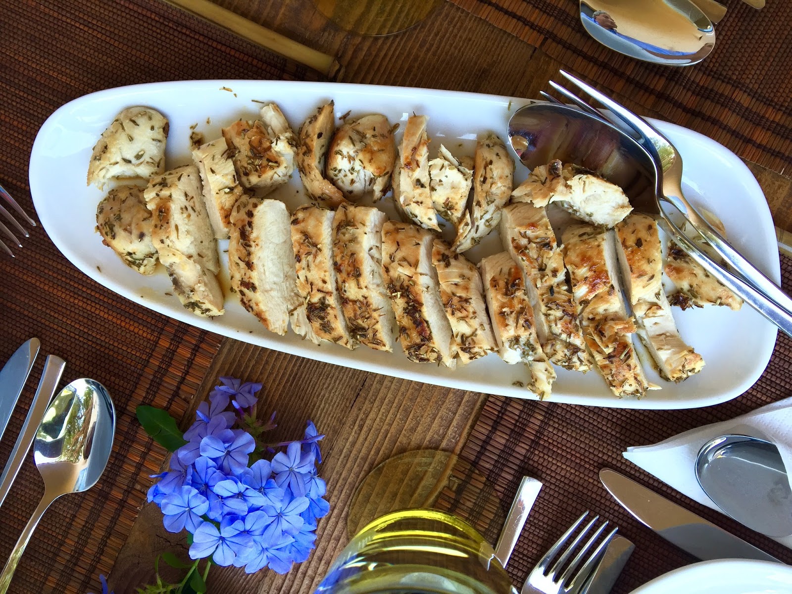 Todos ( ou quase todos) os almoços eram saladas. Saladas grandes e bem recheadas, com maça, milho, gambas, etc etc, e hoje fizemos peito de frango grelhado a acompanhar.