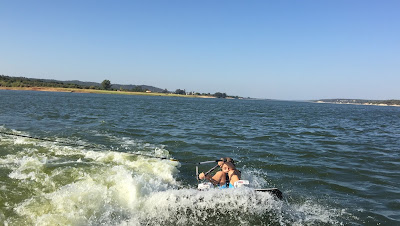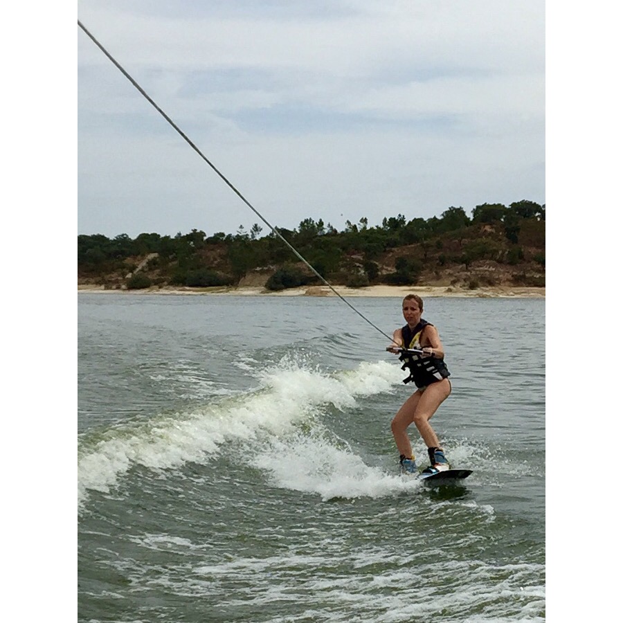 Após 10 anos sem ter feito ski, consegui levantar-me à primeira em wake. E ainda tentei mono, mas os 10 anos passados foram pesados, e mais os 10 acumulados à idade já não perdoaram, e o corpo doía. Aliás doía-me todo! Pernas, lombares, pescoço, abdominais, braços, etc.