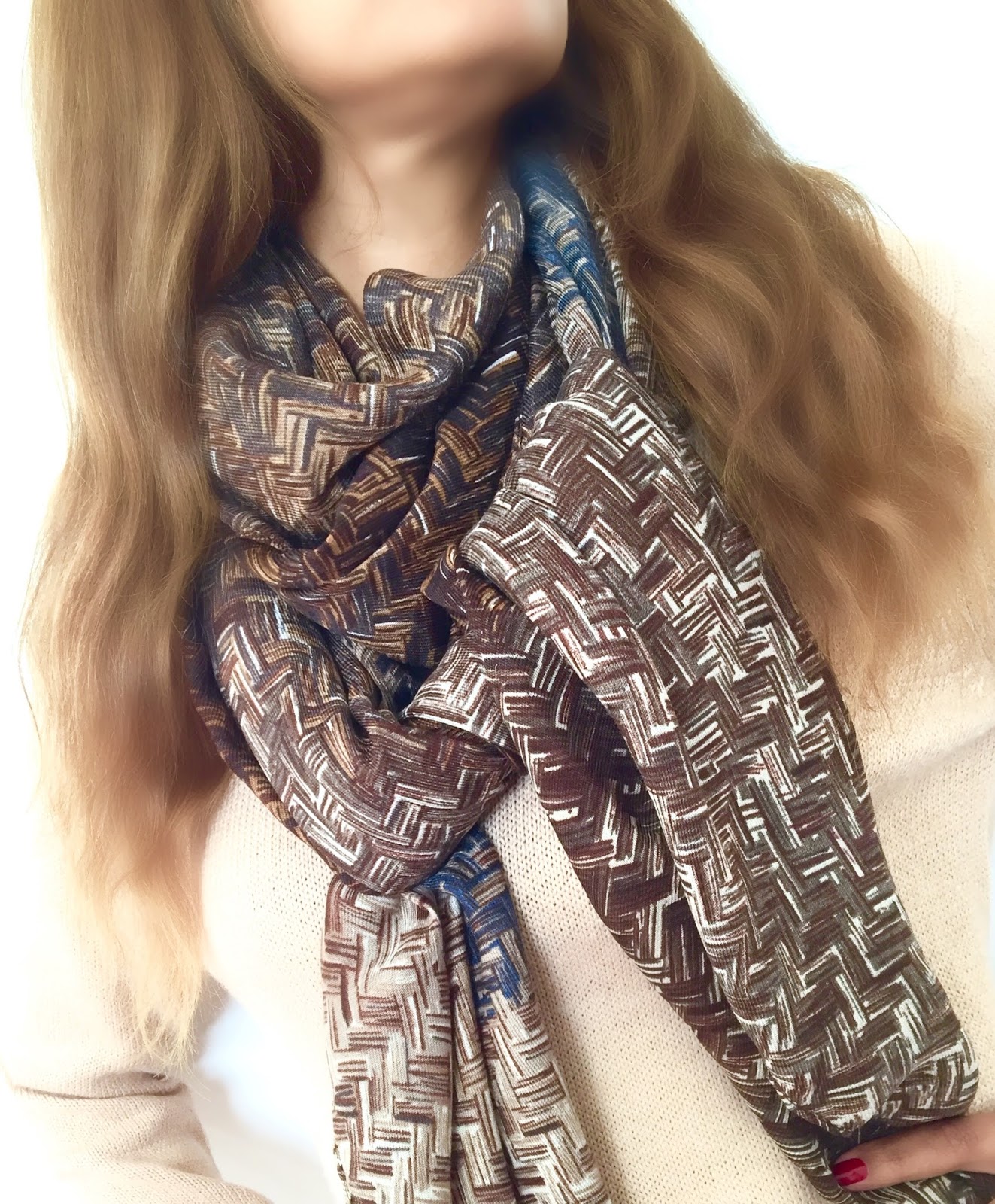A Marsala&Green faz um lindo print em tons de verde e marsala. E dá para usar dos dois lados. É macia e fininha, portanto é óptima para pôr por cima de um top giro, ou até mesmo para estes dias não tão frios.